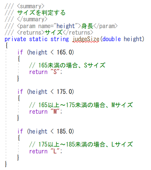 例えば下記画像の処理の場合、185以上の場合の戻り値がないのでエラーになります。