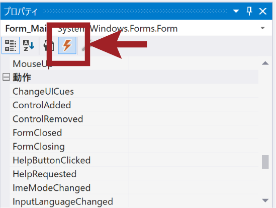 A.デザインのほうでイベントに適したイベントハンドラが設定されているか確認をしてください。 プロパティの雷マーク部分を押すと、イベントの設定が確認できます。